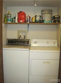 Beautiful one bedroom condo located in St. Charles in a great location right off 94 & the Page Extension in the Francis Howell School District. This cozy condo is located on the main level with a large master bedroom with a walk-in closet and master bath which includes a marble vanity and garden tub. Nice eat-in kitchen with a breakfast bar, custom cabinets and a dishwasher! There is new light fixtures throughout. Walk out the front door, and there is lockable storage right across the way. This home has washer/dryer in the unit and 2 nice decks to enjoy the outdoors (one off living room & one off bedroom).