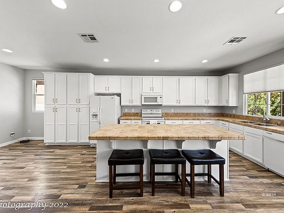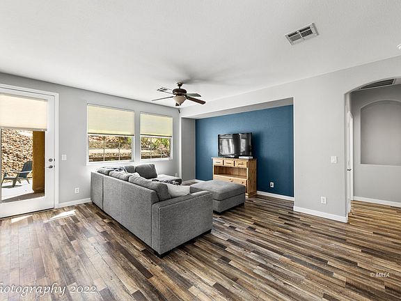 This spacious home is located in St. Andrews, a single family community north of I-15 surrounded by the Canyons Golf Course. The home is situated on a spacious .29/ac home site and backed by an attractive desert bluff creating a wide open feel. The yard is quaint and the mature landscaping requires little maintenance. The back patio has been extended allowing ample room to entertain and enjoy the outdoors in the sun or the shade. The eastern orientation is ideal for year round use. The interior of the home is beautiful and freshly painted with a modern flair. The kitchen has white cabinets, tons of storage space and a roomy center island. The breakfast nook has a sliding glass door out to a side patio. The floors are lined with a wood like laminate and two of the bedrooms have carpet. The den is versatile and can be used as an office, living room or formal dining room. The main bedroom has two walk-in closets and a lengthy double vanity and soaking tub.
