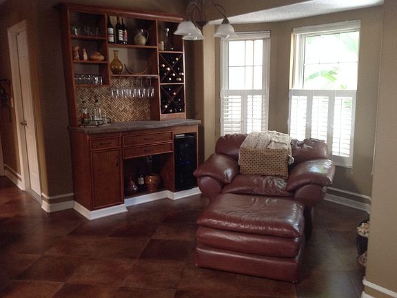 This is a custom built home that has a split floor plan with 3 full bedrooms. An open living room, dining room and sitting area with a custom wine bar. Beautiful walk-in shower with dual vanity sinks. Oversized fenced in yard backed up to a bird sanctuary. Outside work shop and private deck and lanai with a heated inground spa makes this property complete!
