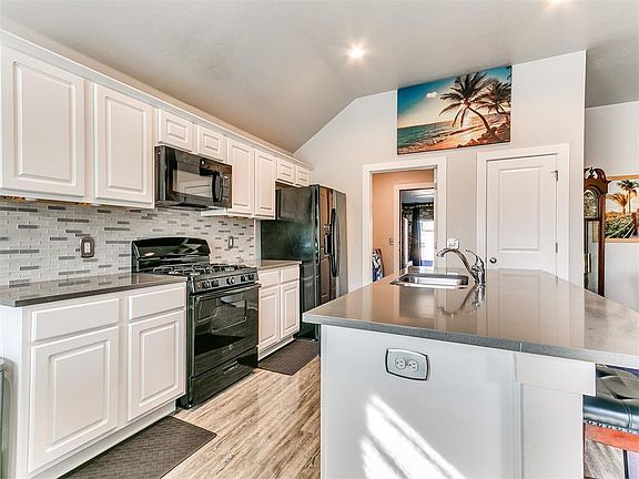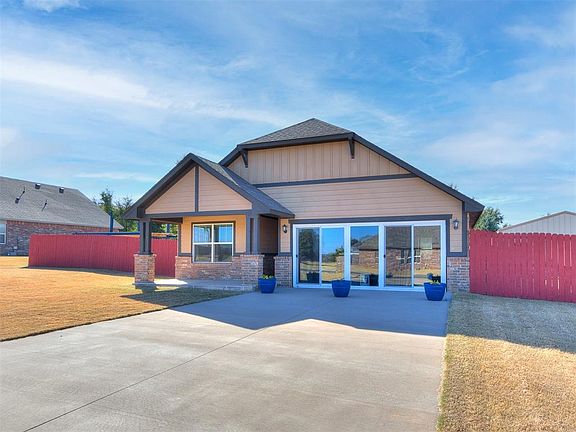 The unicorn! Over 1200 square feet of custom-built exterior decks, land (over 1/2 acre), 24x30 shop, two driveways, a fully fenced yard, tons of mature trees, and accent lights. Immaculate one-owner home with added game room/bar! All are located in Edmond schools, with Logan County and rural water! This open-concept home boasts newer, wood-look luxury plank flooring, modern paint colors, custom blinds, a bonus room, and much more. Your kitchen includes a quartz countertop with a center island, an upgraded glass tile backsplash, a designated pantry, a dining area, and black appliances. This home is perfectly designed for entertaining. Head out to your serene backyard to relax or entertain from your 1200 square foot custom deck, inspired with a resort-style feel! The owner grew produce from their garden off the fenced-in shop area.