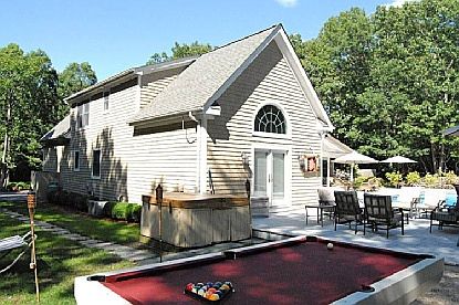 An amazing opportunity awaits you to complete the interior of this home to your liking with amazing potential to expand or build brand new. This Traditional home is sited on a secluded and sprawling 3.6 acre secluded flag lot. Originally with 7 bedrooms and 6 full baths, this home offers 4,000+/- s/f of interior living space, with an additional 2,000 +/- s/f of lower level space to be finished, a light-filled living room with vaulted ceilings, beautiful hardwood flooring throughout, a marble fireplace and French doors leading outside to the deck and heated pool for all the comforts of outdoor entertaining. The open floor plan included spacious common areas, a formal dining room, gourmet kitchen and a great room. The first floor primary suite offers scenic views of the landscaped backyard which is bordered by a 29 acre reserve. Currently, the property offers a full-sized tennis court, basketball court, a two-car garage and has plumbing and electric in the interior of the house in place. Centrally located between Sag Harbor, Southampton and Bridgehampton villages and only moments to bay beaches, golf courses, beautiful waterfront restaurants and marinas. A great investment opportunity!