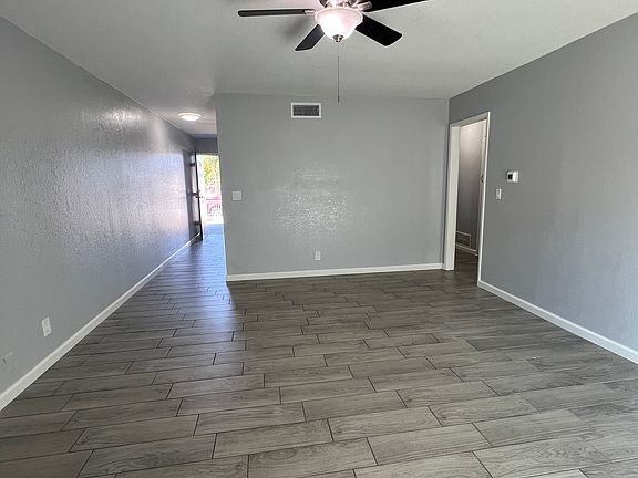 Has fireplace in living room. Nice size patio in back. Near school, shopping and transportation.