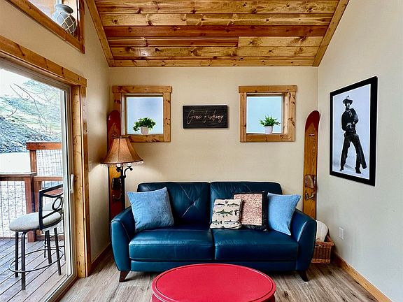 Affordable!! Million $$$ Views from this Adorable Cabin, it sets directly on the Bid Eddy of the Salmon River. Built in "2021" in like new condition with quality construction, mountain finishes amazing floor plan. Master suite, and views from everywhere 2 full baths. Spacious open design, roomy deck directing on the river. Fishing, hunting Jet Boats, Rodeo's & Hiking !!What a great opportunity to own your own getaway and AIR B&B it will pay for itself!