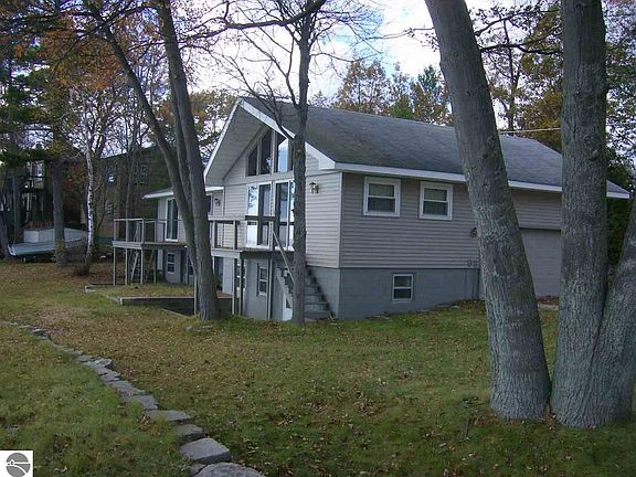 Beautiful views of Lake Huron from this lakefront with 127 feet of frontage. Five bedrooms, three baths, two kitchens with plenty of space for you and your guests. Built to house two families if needed and able to maintain privacy for each. Large 14 ft open beamed ceiling and a large loft, housing two good size bedrooms, a bath and a sitting area. A large lower level with two walk outs to the lake from a second kitchen and the huge family room with a gas fireplace. The large two car garage with work bench is attached. Four sliding glass doors take you to two 10 x 13 lake side decks from the main level and the lower level. For an additional investment, 80 ft more of lake frontage with a boat launch, two story garage and potential living space above can be acquired. This property has to be viewed to be appreciated for all the possibilities.