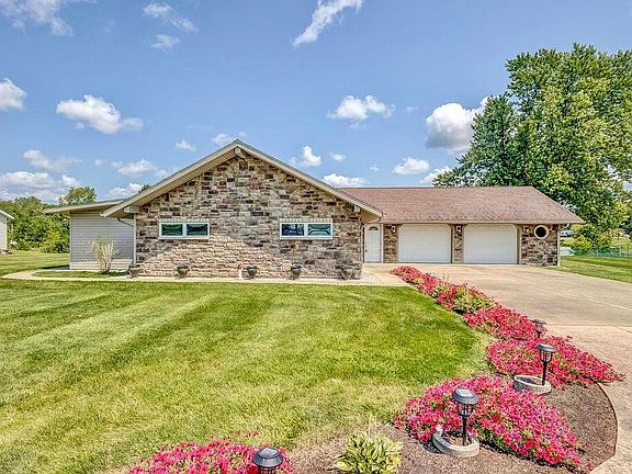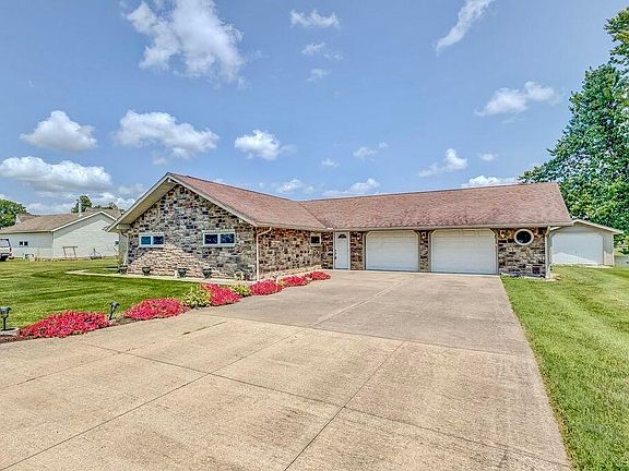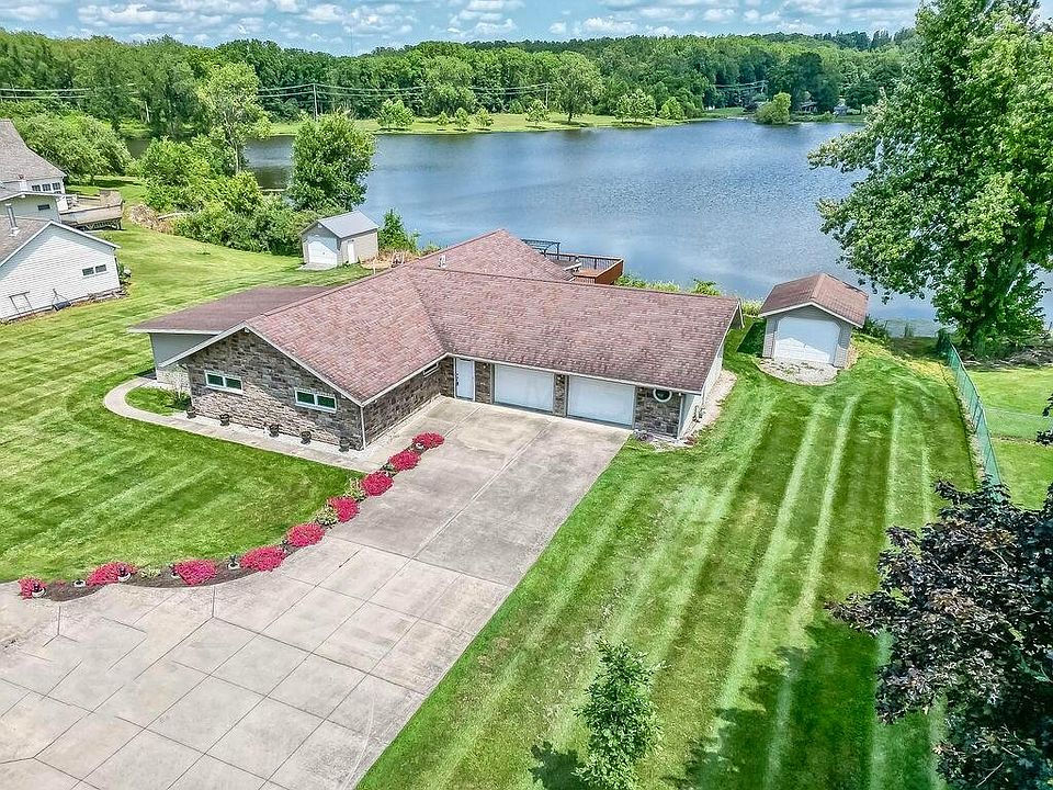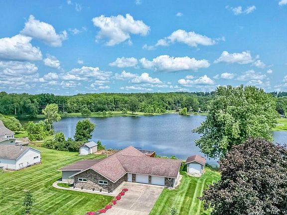 Lake Front (Beams Lake) Home in Mt. Vernon! Super Nice & spacious 4 BR/2 BA Stone & Vinyl sided Ranch situated on just over 3/4 of an acre. Open concept Cathedral Ceiling Great Room that features- Cabinet filled kitchen w/major appliances, granite cntr tops, & highlighted by Large Island, adjoining dining area w/glass sliders leading to concrete patio, cozy living room w/gorgeous brick gas-log fireplace. Huge Owners suite w/private full bath & large walk-in closet, also w/glass sliders leading to concrete patio & backyard. Awesome sunroom off of Great Room providing great lake views & tons of sunlight. Off of sunroom is a Large Deck(approx-25'x20') that overlooks Beams Lake. New electric, plumbing, roof, & gutters (2009). 2 car attached garage + 1 car detached garage, Concrete Drive(2016)