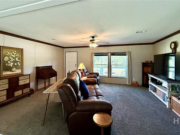 Come check out this spacious 5 bedroom 3 bath manufactured home. This 2024 model has an open concept floor plan. The additions include a carport, front porch, screened back porch, deck, shop and shed with lean to's. This private 8.24 acre lot is perfect for gardening and fishing in the pond. Get ready to make this your home!