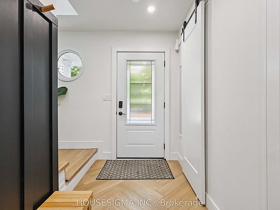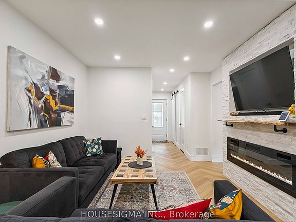 Stunning, 2021 renovated 3-bedroom, 4-bathroom detached home in one of North Oshawa's most sought-after mature neighbourhoods. Situated on a premium lot with no front or rear neighbours, this home backs onto Ritson Fields, a sprawling, city-maintained open space perfect for family play, walking trails, and community recreation. Step inside to discover a completely modernized interior featuring: Custom-designed solid maple kitchen with solid plywood shelving premium quartz countertops, upgraded gas stove, soft-close hardware, crown moulding, and built-in features like dual lazy Susans, spice rack, tip-out trays, and custom pantry All bathrooms fully renovated, including a master ensuite with glass-enclosed shower and elegant tile work Premium flooring installed in an elegant herringbone pattern on the main floor Smooth ceilings throughout the house Upgraded LED pot lighting, and designer accents throughout main floor, including a stained wood wall in dining and a natural stone fireplace wall with built-in 60" electric fireplace in living room Refinished oak staircase, new patterned carpets upstairs, and custom walk-in closet in primary bedroom Finished walkout basement with separate entry, full bathroom, and in-law suite potential Major upgrades include: New ductwork, Lenox furnace & AC (2021) New widened entry door, insulated garage door, and patio door (2021) Widened 4-car driveway (2024) + interlocked front porch (2023) Finished basement with vinyl plank flooring, tiled laundry, pot lights, and flat ceilings Located minutes from top-rated schools, shopping, transit, and major amenities. Truly turnkey, no expense spared. Just move in and enjoy modern living in a family-friendly community.