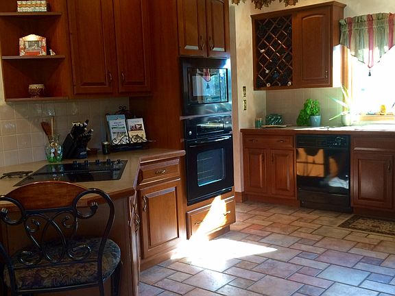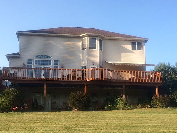 As you approach the property you will immediately notice the attention to detail in the landscaping surrounding the front walkway. Enter the charming portico porch accented by a stone archway. Entering the home you find a functional floor plan. The tile entry leads to the dining room with hardwood. The breakfast area and living room lead to the oversized deck to relax and enjoy those beautiful days. Living room with stone gas fireplace and Brazilian cherry hardwood. Take a stroll to the 2nd floor and find a spacious master suit with jetted tub, shower and double bowl vanity. You won't be disappointed in the room you find with the additional 3 bedrooms and full bath. The lower level... AMAZING! Custom oak wood panels, coffered ceiling, and a dream bar. Coal stove to take the chill off on those cold days. Walk out daylight basement leading to the open back yard.