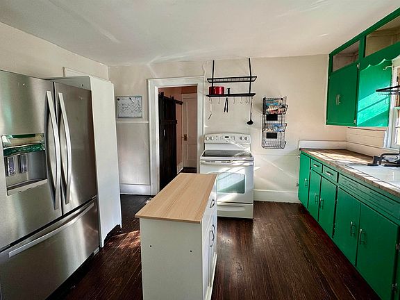 MOTIVATED SELLER! Charming 3 bedroom 1 bath home in a highly convenient location offers 1215 sq ft of living space that features just the right blend of original character and modern updates. Open concept living and dining room is highlighted by a fireplace with a gas log, crown molding, and original hardwood floors that extend throughout most of the home. The kitchen is bright and unique with exposed brick accents, butcher block countertops, and comes with newer appliances. The updated bathroom adds a fresh modern touch to the home's aesthetic, and the partial unfinished basement is a bonus, complete with laundry hookups, a utility sink, and a rough in for a half bath if desired. Additional highlights include newer windows (2020) in the living, dining, and bedrooms, new water heater (2021), new furnace and central AC (2023), and updated plumbing for the drains in the kitchen and bathroom. Outside you can enjoy a developed native plant butterfly garden, many berry bushes, and a small detached garage for additional storage!