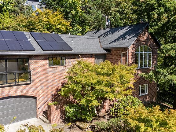 Tucked away in a quiet corner of one of Portland's most beautiful neighborhoods, this unique home has been extensively renovated with timeless finishes and thoughtful details. The true heart of the home is in the stunning, fully remodeled kitchen, featuring: 9 ft walnut island with concealed storage, SubZero/Wolf paneled appliances, 36 in refrigerator, 57 bottle wine cooler with temp control, second speed oven/microwave, gas range with griddle, and so much more! Beautiful forest views and abundant natural light fill the main level through the large sliding windows and custom Juliette balcony. The spacious main level also includes a remodeled butler's pantry with ample storage, open living and dining rooms with soaring vaulted ceilings, and a main level primary bedroom with ensuite bathroom and radiant heated floors. The lower level offers two additional bedrooms, a brand new full bath with custom white oak cabinetry and soaking tub, and a fully remodeled laundry with custom cabinetry, mudroom storage, and deep utility sink. An attached ADU/flex space with separate entry, full bath, and kitchenette offers endless possibilities as a guest suite, office, or home gym. Experience energy savings and 24 hr+ whole home backup in the event of a power outage with the fully integrated solar and battery system installed with a new roof in 2023. Additional updates include: new white oak flooring throughout (2024), two gas fireplaces with remote start (2022), remodeled family room bookcases with walnut cabinetry (2022), newer furnace/AC/water heater, and heated driveway. This ideal SW Highland Road location is in close proximity to the Zoo, Hoyt Arboretum, Racquet Club, and scenic trails via Washington Park. A truly one-of-a-kind home!