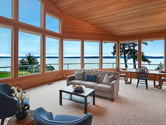 Unique 7.5 acre gated estate on 1200ft of high bank waterfront. Exquisite water and Mt views. Dramatic living & dining room w/cathedral ceilings, wall to wall windows & cozy propane fireplace to relax & watch the ships & wildlife. Entertainers dream kitchen, with butler pantry, quartz counters, induction oven & more. Huge master suite with soaking tub & private deck. Guest wing with 2 bdrms, loft & living area. Large partially finished basement w/craft room, storage room, shop & automatic generator.