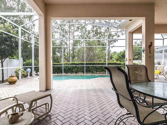 Spacious defines this Model Condition pool home in N. Naples. VERY LOW HOA DUES that include cable, WiFi, lawn care and amenities. This 3 Bedroom +Den, 3 Bath home is gorgeous inside and out! Entertain by your private pool on the brick paver deck including 2 under roof outdoor living areas. Solar heat for the pool. Nicely landscaped privately fenced yard also perfect for intimate entertaining. One bathroom is located conveniently to the pool, no need to walk through the house when dripping wet. Kitchen is a chef's dream with tons of cabinets, counter space and center island. Upgraded Wood cabinets and granite counter tops compliment this kitchen. The master bath has upgraded wood cabinets and granite and is very spacious with large dual vanities, dressing table and very large walk in shower w/ 3 shower heads. Spacious master bedroom with built-in closets system and beautiful wood flooring. Large tile on diagonal in the main living areas and crown molding throughout. New Lennox AC in 10/16. This one owner home has been meticulously maintained and is loaded with upgrades. Accordion storm shutters. Near beautiful Gulf beaches, restaurants, entertainment and great amenities