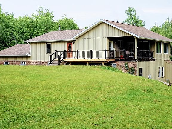 Hunters, Horse lovers.... Open Country property surrounded by woods and privacy. This spacious home features, a view out each window, groomed trails, 3/4-acre pond, and of course the best sunsets around. 3 bedroom (4), 2 full baths, Sooth your aches with a whirlpool tub. Open kitchen with granite countertops, eat at bar, dining area and living room combined. 3 large bedrooms, family room with a woodstove just off the garage where you can come in and take off the chill. Huge open room upstairs for a playroom, formal Livingroom, your business or more. Center room now used as a catch your cold drink room as you enter the favorite lookout room connected to the covered porch. Seller says it is too much for one person, tried air bnb and is not taking it off the market this time. 4 car attached dream garage with tall ceilings. for horses a 2 run in or 4-wheeler shed included. Horses and fencing have been removed. Deer plot in the front yard bringing nature to view daily. Owner is Lic. agent