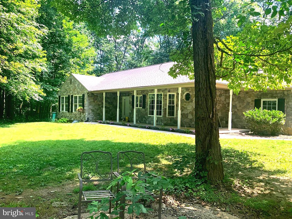 Stone and vinyl siding rancher on 1.3 acre level wooded lot. 3 bedrooms on the main level and 2 additional lower level bedrooms, 2 full baths on the main level. A large living room/dining area & gas fireplace New sliding doors to very large deck, Big separate storage area with direct access to rear yard. 2 car attached garage and plenty of additional parking on the driveway.. Recent improvements include new vinyl plank floors on the entire 1st floor, fresh paint throughout 1st floor & lower level, new wall to wall carpeting in lower level, , new dishwasher and microwave new interior & exterior doors. Laundry room on main level and laundry hook ups and sink in basement. Rear yard is fenced. This lovely home is serviced by public water and on site septic system, Propane Gas heat and central air conditioning. Quick occupancy .