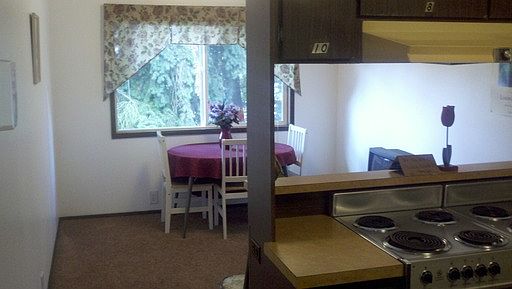 cozy and friendly communityThese units are for one person and have carpeting a private bath and refrigerator. They also have a sliding glass door to private patio/balcony. The quints are 5 apartments to a hallway. You will be sharing a kitchen/dining area with the other 4 residents, complete with 2 stoves, double sink, garbage disposal and each resident has their own cabinets. There is also a storage area at the end of the hall with a floor to ceiling lockable storage area for each resident. We have a community room that features a cable-ready TV, Coke and snack machine with a restroom just down the hall. This building also has our laundry area in it and the laundry room is accessible 24 hours a day. We are on the bus line and close to shopping and the fairgrounds. We have 2 parking lots for your convenience. At the office we have a large selection of videos that can be checked out for your use as well as vacuum cleaners. We sell stamps, we can make change for laundry and snack machines and copying and faxing are also available.RENTAL CODE: BAREA: W. Eugene near FairgroundsTYPE: ApartmentPET CRITERIA: No PetsLEASE TERMS: Month-to-monthUtilities: $35/mo.ALL BUILDINGS ARE 2 STORIES & HAVE PATIO OR BALCONY