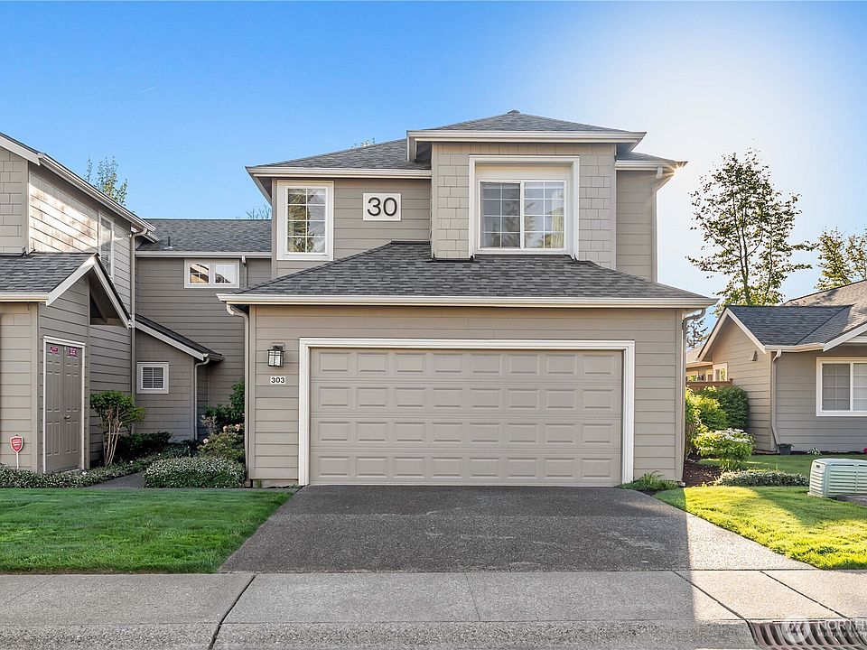 Turn-key 3 bed/2.5 bath home in the gated Somerset community! New carpet, furnace and insulated garage door. Welcoming entry greets you with vaulted ceilings in the living room with a cozy fireplace. The spacious kitchen has generous cabinet space and a convenient eating nook. Dining room offers easy slider access to the low-maintenance backyard with fenced patio space. Convenient laundry/utility room, powder, and large coat closet round out the main floor. Walk upstairs to a large primary suite with a 5-piece en-suite and walk-in closet. Two additional bedrooms and a full bath down the hall. Large attached two car garage and additional guest parking next to the community park! Just minutes to I-5, Boeing, Golf Course and Park, and more!