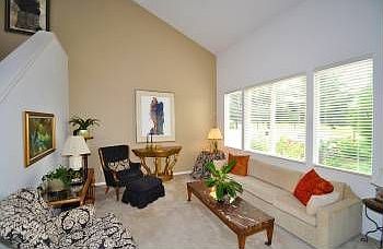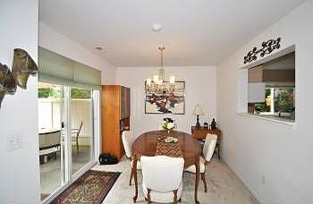 Unit fronts to golf course w/view of the 17th green. Best location in community! Beautiful end unit condo offers 3 roomy BR/2.5BA & attached oversized 2 car grg. Open kitchen w/gas cooking & eating area. Vaulted ceilings in spacious LR w/lovely gas FP. 5 piece MB, & walk-in closet. Unit is one of the largest floor plans @1580asf. DR has sterling silver chandelier & overlooks private patio w/your own yard & garden. Community is gated & fully fenced w/gorgeous grounds & lg open space/play area.