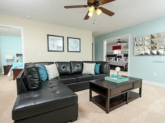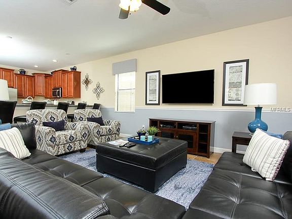 $50,000 PRICE DROP IN LAST MONTH - MOTIVATED SELLER! Why buy new? Compare this home to new construction of the builder. This home is ready and rolling full steam. Jump on it now. 20 WEEKS of bookings and still going. 9 bedroom, 5 bathroom, sleeps 24! In stunning golf resort community of Champions Gate, The exterior, with its varied roof lines, brick facade, tile roof and brick paved driveway and walkways is exquisite. Kitchen has upgraded tile and cabinetry with stainless steel appliances and granite counter tops. Highly desired south-west facing over-sized pool and spa are perfect for hours of family fun. The Oasis Clubhouse and resort style pool complex. Restaurant / bar, movie theater, arcade, yoga room, Camp Oasis, and a full exercise room/gym. Large circular pool, kiddie splash park, over 500 ft. lazy river, tiki bar, 2 sand volleyball courts and air conditioned cabanas. All information recorded in MLS is intended to be accurate; however it should be independently verified.