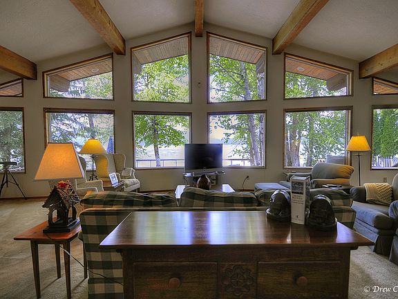 Location, location-3 bedroom, 2 bath log home on Whitefish Lake. Flat lot with slight drop to pebble beach, mature trees and fabulous view. Walking distance to town and Lodge at Whitefish Lake.