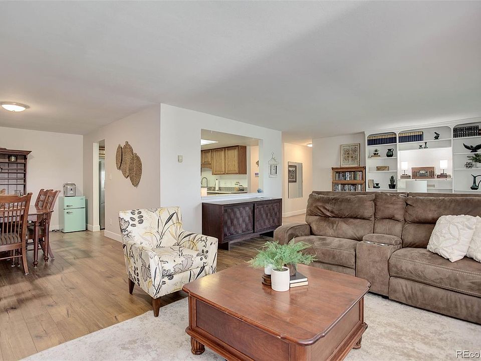 Come discover one of the largest floor plans available in the spectacular Heather Garden's Senior Living Community for active adults 55+! This property is near the Cherry Creek State Park and has spectacular VIEWS of OPEN SPACE!! This desirable and completely REMODELED 1560 sq. ft. END-UNIT offers 2 spacious bedrooms, 2 bathrooms, and versatile living areas. The unit offers newer wide-plank LVP flooring, smooth ceilings, new trim and baseboards throughout! Embrace abundant natural light and an open ambiance and enjoy the convenience of a large coveted in-unit laundry room with washer, dryer and built-in cabinets. The large updated kitchen features sleek Quartz countertops, tile backsplash and is complete with stainless steel appliances, coffee bar, a pantry and adjacent dining room. Relax in the sprawling great room featuring floor-to-ceiling bookshelves in the sitting area to enjoy your library or display your favorite mementos. Retreat to the primary bedroom with a unique walk-in closet and gorgeous remodeled bathroom with shower including new tile, cabinets, fixtures, comfort height toilet, vessel sink and Quartz countertops. A secondary bedroom and remodeled full bathroom cater to guests or use the secondary bedroom for a home office or hobby room. Lounge in the comfortably enclosed Lanai and enjoy watching the wildlife in the open space with Southwest exposure, relishing the incredible Colorado sunsets! Benefit from same floor storage unit, under-building parking with 1 dedicated parking spot and additional cowboy storage. This location offers convenient access to the Light Rail, nearby greenbelts, parks, and restaurants. Welcome home to comfort and convenience without the maintenance and be sure to explore all the community offers it's residents (clubhouse with fitness center, indoor and outdoor pools, tennis/pickleball courts, library, on-site restaurant, golf course and every club you can imagine to name a few!