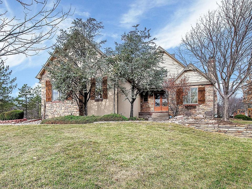 Savanna West stands out as one of East Wichita’s most desirable neighborhoods, offering custom homes, spacious lots, NO SPECIAL TAXES, and highly sought-after Andover schools! This impeccably maintained executive home is packed with high-end features and thoughtful design. Priced well below county appraisal, there is plenty of room for a buyer to build equity with personal touches. Step through the grand double doors into a breathtaking two-story foyer. To the right, your dream office awaits, complete with two sets of French doors, a vaulted and beamed ceiling, and a cozy fireplace for warmth and ambiance. The formal dining room showcases a unique recessed ceiling with a custom leathered treatment, adding a sophisticated touch. The fully custom kitchen is a chef’s paradise, seamlessly blending style and functionality. Paneled appliances—including the dishwasher, trash compactor, and refrigerator—integrate beautifully with the cabinetry. The six-burner gas range with a 1.5-oven setup is nestled into its own alcove, while the oversized island features a built-in warming drawer, a prep sink, and additional storage. A sunny hearth room with built-in glass cabinets provides ample display and storage space. Both the kitchen and living room are highlighted by an exquisite coffered ceiling, and another fireplace, framed by built-in shelving and cabinetry, serves as the focal point of the living room. Just past the powder bath, the primary suite offers a luxurious retreat. Brand new carpet, a tray ceiling, a cozy fireplace, and a private slider to the back deck create a relaxing atmosphere. The ensuite bathroom is a spa-like haven, boasting heated floors, an oversized walk-in shower, a large soaking tub, a water closet, and separate vanities. The spacious walk-in closet is conveniently connected to the laundry room for added ease. Upstairs, a large loft provides built-in shelving and cubbies, ideal for electronics or study spaces. Two oversized bedrooms share a Jack-and-Jill bathroom, each with private vanity areas. The front bedroom features a generous walk-in closet with a hidden bonus room behind it—perfect as a clubhouse, office, or playroom. The expansive basement offers even more living space, featuring a large rec room with hardwood floors, another fireplace, and a full wet bar. Down the hall, you’ll find an additional bedroom, a full bathroom, and a versatile bonus room that can serve as a home gym, game room, office, or theater. Storage is abundant, with over 500 square feet dedicated to keeping everything organized. This stunning home boasts a durable stucco exterior (not EIFS), a 50-year Highland roof, and professional landscaping on an oversized half-acre lot. The lush backyard, maintained by an irrigation system on a well, is a private oasis featuring an extended deck, a paver patio with a built-in fire pit, and a custom obstacle course. A certifiable forest in the backyard provides privacy and a serene, park-like setting. Homes of this caliber are rare—schedule your private tour today!