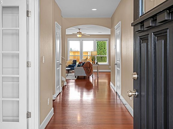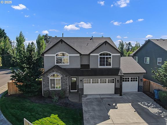 Welcome to this stunning Felida corner-lot home backing to Pine Crest Golf Course, a community landmark for over 57 years, offering privacy with only one side neighbor and everyday access to golf, a practice green, and a driving cage just steps away. Inside, timeless finishes include stunning real hardwood floors, alder cabinetry, granite counters, and a kitchen built to entertain with a 5-burner gas range, built-in oven and microwave, and a large eat-in bar overlooking the open-concept living space. The main level includes a versatile bedroom or office, while upstairs features oversized bedrooms with vaulted ceilings, a massive bonus room, and a spacious laundry room with granite, sink, and washer and dryer included. Thoughtful upgrades include newly replaced roof in 2018, full security system on every exterior door and window, CAT-5 wiring throughout, and an in-home speaker system with surround sound extending to the back patio and garage. Recent updates include new blinds, new exterior paint, and a two-year-old fence. Outdoor amenities include sprinklers in the front and back, a 30-amp RV outlet, and an expansive 869 sq. ft. three-car garage with extended bay, pull-through access, and a massive driveway accommodating up to six cars. With its blend of luxury details, smart systems, and an unbeatable location near top-rated schools and parks, this home is designed for both convenience and year-round enjoyment.