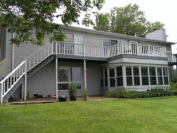 Leisurely fishing and boating come with this Lawrence Lake channel front one story, 3 bedroom, 2 bath home with walkout lower level. Property slopes to the water, includes utility shed, and has provided many years of getaway recreation for the owner. Great house for entertaining with lots of potential. Come to the lake!