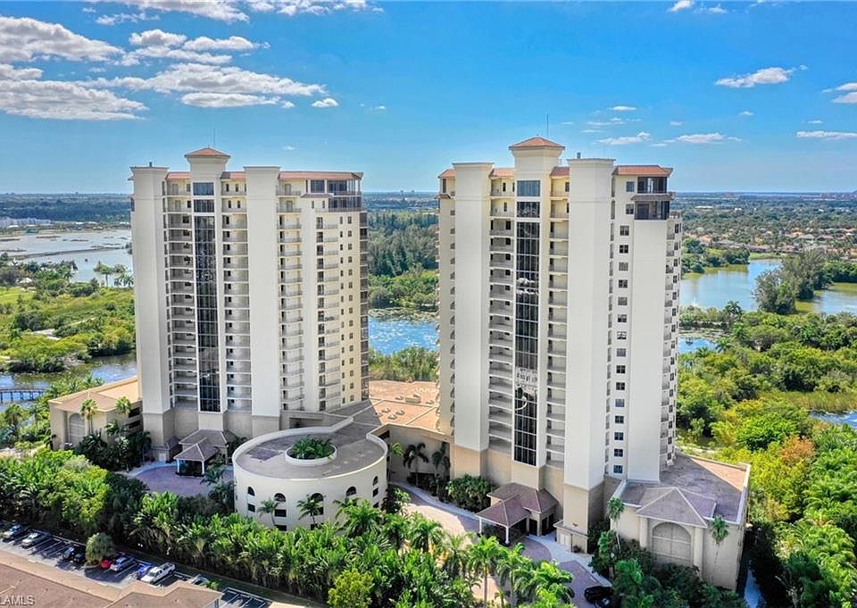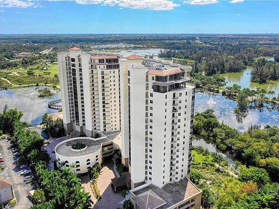 Spectacular Riva Del Lago 15th floor home overlooking almost 300 acre Lakes park, the city to the river. This beautiful 3 bedroom 3 bathroom with huge screened balcony. The home is in the popular north tower. Included is large bedrooms and an open great room design. The master bath has a beautiful garden tub, separate shower, dual sinks and vanity. Riva Del Lago has many amenities and concierge services, heated pool and twin spa, gazebo, picnic benches plus a barbeque area. Paddle board launch with direct connection to the park. Totally equipped fitness center elegant lobby room, media lounge. A billiard table, business lounge, kitchen facilities and service bar which is available to reserving for parties. Two parking spaces and a storage room are included for your convenience. A large infinity edged resort swimming pool with 2 Jacuzzi's, library, lighted Har-tru tennis courts are also on premises for your enjoyment. Wonderful security and a pet friendly environment. The location is very convenient to shopping, beaches, entertainment, restaurants, and just minutes from southwest international airport. Motivated Sellers !
