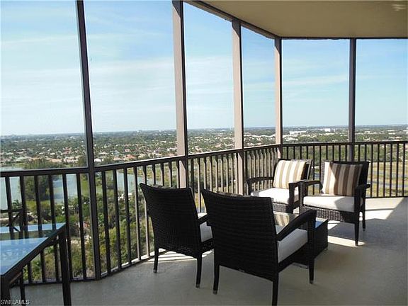 Welcome to one of the best values in High Rise living! This 19th Floor condo has outstanding views to the west from the screened lanai. On a clear day you can see all the way to Sanibel! This unit has been meticulously maintained and features a new HVAC system in October 2016, new refrigerator, wall oven and microwave. Condo is sold Turnkey and is tastefully appointed with cozy furnishings, accessories and electronics. Everything is included other than a few personal effects and the dining room table which is a Family Heirloom. Riva Del Lago is superbly managed and maintained by its excellent on-site staff and Manager. Amenities are second to none with lakefront heated pool and spa, state of the art fitness room, elegant community rooms and lounges, billiard table and even a piano in the lobby. Small boat/canoe/kayak storage and private access into Lakes Park to enjoy the water, bike or walking paths. Riva Del Lago's location is excellent with great shopping and restaurants very close by and the airport and the beaches 20 minutes away. This Condo In The Sky is clean and ready to accommodate your active SW Florida Lifestyle. Easy to visit, call your Realtor and schedule a showing!