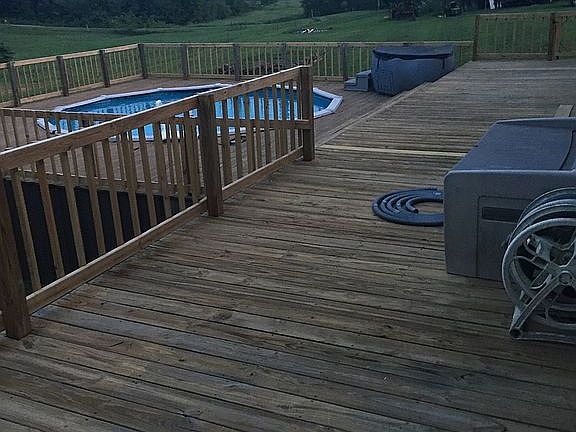This house sits on 11.63 acres. The main living area includes an entry foyer with a 1/2 bathroom, spacious living room with cathedral ceiling and hardwood flooring. The dining room flows into the galley kitchen which has ceramic tile flooring and quartz countertops. Also on this level is the master bedroom with master bath and walk in closet, an additional bedroom with an attached full bathroom. The 2 car garage is located right off the kitchen area. The partially finished basement includes a spacious family room with fireplace and wet bar area. Hardwood floors. There is also two bedrooms and a full bath located in the finished area. The unfinished portion of the basement includes a nice size workshop with garage door access and full length work bench. The basement is a walk out and could easily be used as an apartment or in-law suite. The 11.63 acres includes 4acres of pasture area and about 5 acres of wooded hillside. The house is sitting on 2 acres of lawn with a child’s playhouse and a chain link fenced dog lot. There is a garden spot and orchard. The fruit trees consist of apple, peach, plums and pear, fig tree grape vine, blueberry bushes, raspberries, blackberries, strawberries, and elderberries that produce yearly.