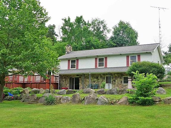 Secluded, private, quiet serenity! Your private country retreat awaits you. Long winding driveway conceals the house from the road, drive to your home while enjoying the beautiful pond view down the driveway. This home features a gorgeous stone wall feature, 4 bedrooms, and huge master suite with private deck. Living room on one level and family room on another for plenty of entertaining space. Full finished walkout basement, rec room, 2 wood burning stoves to help reduce your heating costs. Amazing views from the front deck. Quality hardwood, custom woodworking throughout. Large boulders line property. Custom stone stairwell.