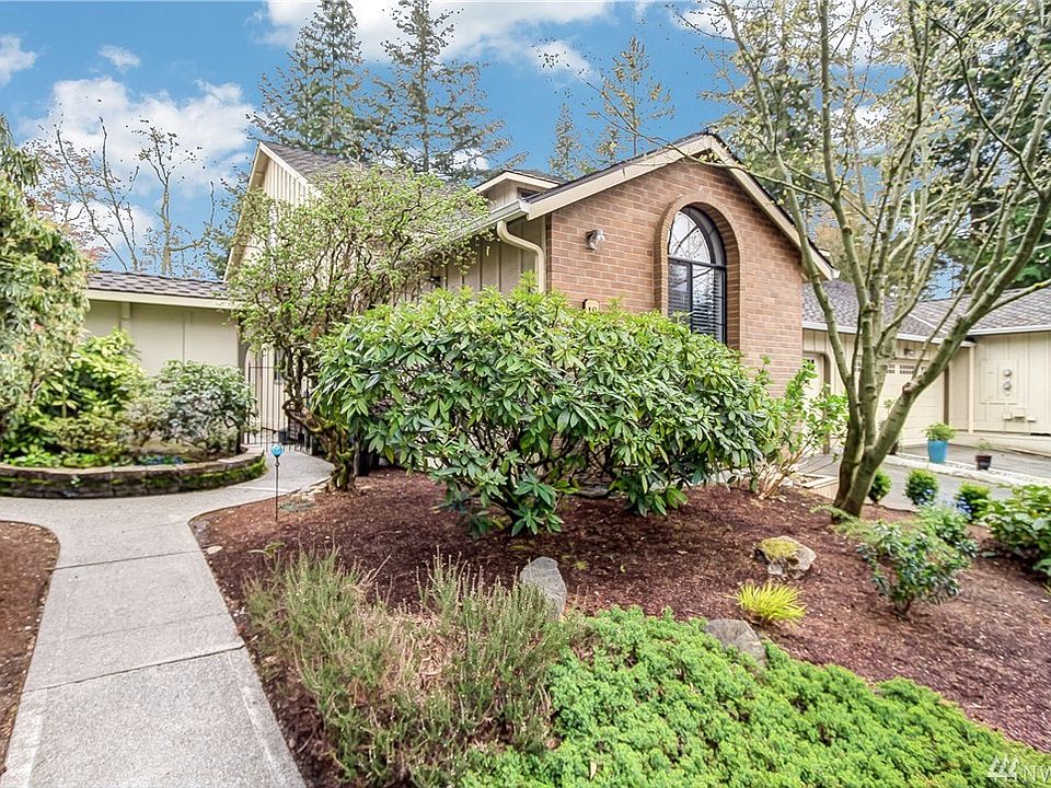 Welcome home to Trillium Court! Private gate leads to a tranquil park like setting. This updated 2295 sq ft 2 "Master suites" one up and one down. This home boasts a den that can easily be a 3rd bedroom, loft, soaring ceilings/skylights/tons of storage. You will love the Chef's kitchen with hardwoods, subway tile backsplash, white counters and updated cabinets. Master Bath w/granite and passthru double shower! Huge private backyard and deck. Close to Mill Creek, easy commute to Bellevue/Boeing