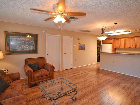 WoW..Corner Unit- Remodeled condo - Nice cabinets w/soft close, full granite counters and backsplash, undermount sink. Skylights & solar tubes to bring in the Sun. HVAC in 13' & ceiling fans for air, newer Wtr Heater. Flooring is nice wood look laminate floors,tile in bathrooms, carpet in bedrooms. Bathrooms have newer vanities w/solid surface counters, full tile showers. Newer nuetural interior paint. Separate storage shed & covered parking. Furnishings Convey!.