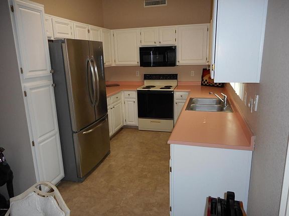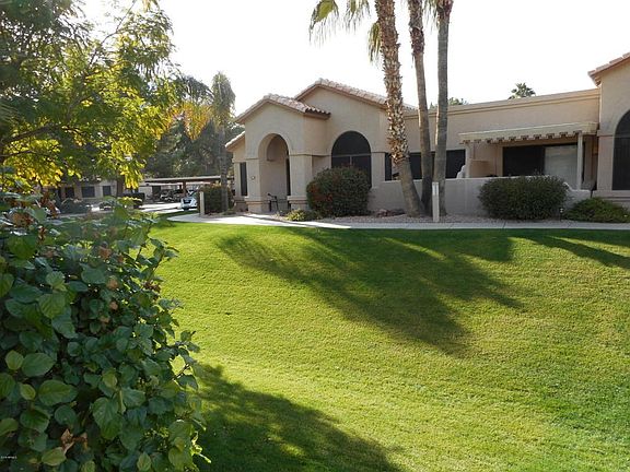 LOCATION, LOCATION, LOCATION! This beautiful Los Cabos model has a green belt view from the kitchen/DR, LR, patio and master bedroom! Enjoy the tiled patio with a north facing patio for year round living. 20'' neutral tile and new carpet in the bedrooms. Newer refrigerator and painted cabinets throughout. This is a MUST SEE as these casita's do not last long, especially with this location! Sun Village has beautiful amenities and it is filled with grass and water. It has a 24 - 7 guard gate community. Sun Village boasts a golf course, pickle ball and tennis courts, beautiful swimming pool with waterfalls and much more. Sun Village is resort living at it's finest and also has AMAZING entertainment! It almost feels like a cruise ship!