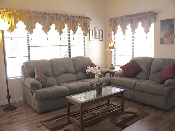 Lovely Cancun casita located in beautiful Sun Village. Fully furnished turnkey and perfect for a snow bird! Split bedrooms are wonderful for guests. All living spaces are wood laminate and there is tile in the kitchen and baths. Very nice furniture and ready to move in. All you need is a toothbrush! Patio is east facing and the property is snuggled in the back for privacy. Sun Village boasts an 18 hole golf course, pickle ball and tennis court, woodshop, restaurant, shuffleboard, outstanding activities, gorgeous pool with waterfalls, fountains and much more. Sun Village is filled with grass and water and living here is like a resort or cruise ship!