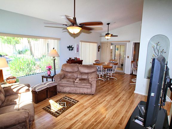 This is an amazing TURN-KEY Cancun casita in a beautiful location in Sun Village! There are so many upgrades including ceiling fans, lighting fixtures, interior paint, new windows and sliding glass doors and blinds just to name a few. Master bath includes custom tiled walk in shower and tiled vanity. Built in cabinetry in guest room/office including a desk. Kitchen appliances, resurfaced kitchen cabinetry, tile and vinyl plank floors and FULLY FURNISHED! HVAC is only 6 years old. Nice covered patio and storage shed with just steps away from a nice common area. Sun Village is resort living at it's finest! Amenities include golf course, tennis, pickle ball, walking, biking, fitness classes, woodshop, billiards, sewing, darts and a gorgeous pool with waterfalls and fountains.