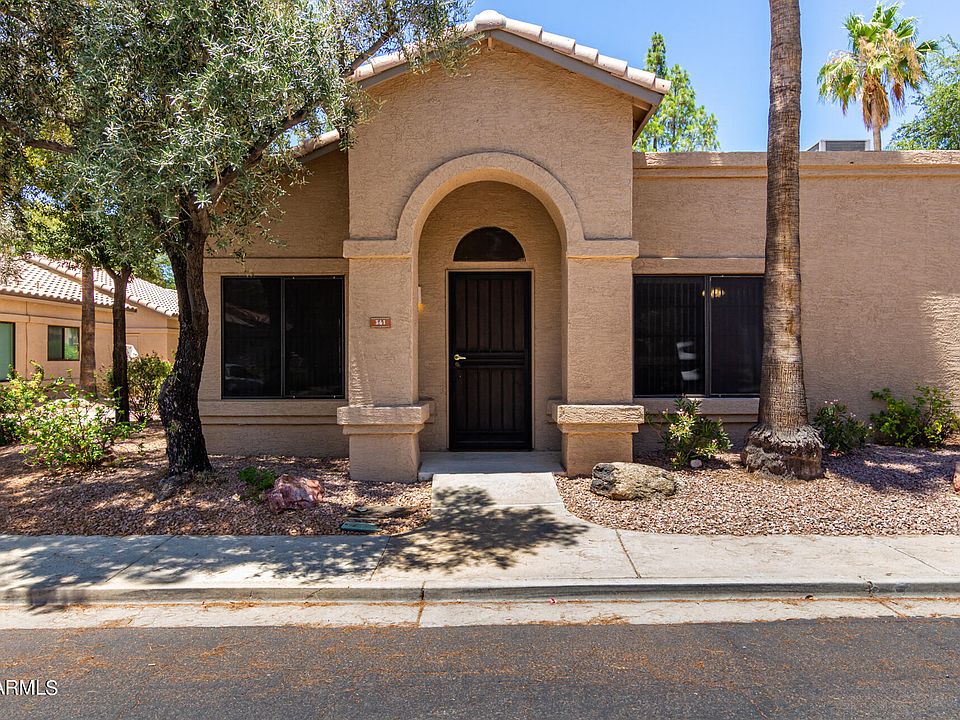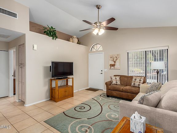 Be the proud owner of this charming furnished townhome situated in the secure, adult-only gated community of Sun Village Condos. The home boasts vaulted ceilings and durable tile flooring in high-traffic areas, along with door levers for easy accessibility. A spacious living room invites relaxation and social gatherings. The kitchen features built-in appliances, ample cabinet space, and a convenient breakfast bar. The main bedroom includes backyard access, a private bathroom, and a walk-in closet for ample storage. This gem comes with a stacked washer and dryer, and extra storage room. Outside, there's a covered patio. Community amenities include a golf course, a pool, spa, fitness center, pickleball, billiards, so much more, encouraging an active and fulfilling lifestyle! A must-see