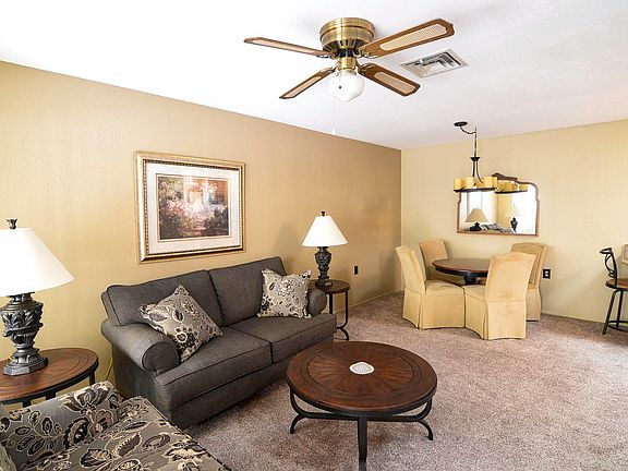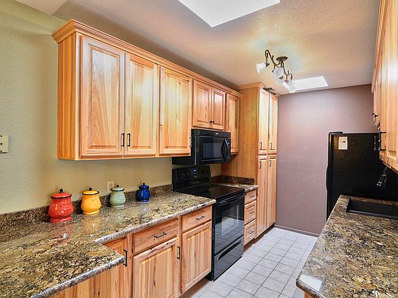 Wowza LAST SECOND SALE FAIL ! RARE remodeled wrap around porch condo! Beautiful updates! Newer Kitchen: Hickory cabinets, undermount sink, appliances, granite counters and newer fixtures. Mini breakfast counter. Tile floors in Kitchen entry and bath. Master has walk in closest and slider out to HUGE wrapped porch overlooking green space! Skylights in kitchen, solar tubes too. 2 bedroom has french doors and triple closet. Gated Sun Village is resort living! Own your piece of paradise!