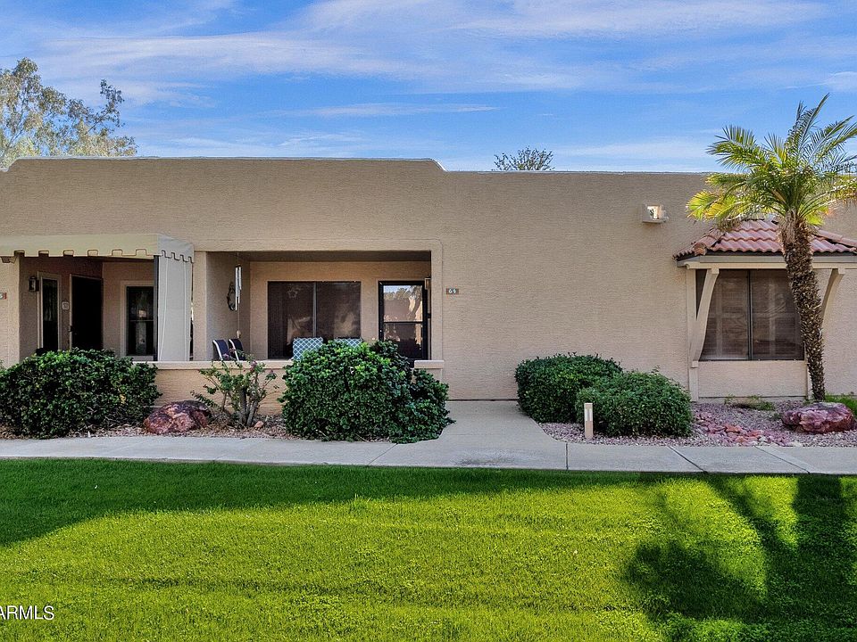 WOW! Check out that NEW PRICE!! Welcome to your new home nestled in the vibrant 55+ community of Surprise, AZ! This charming 2 bedroom, 2 bath residence offers comfort and convenience, perfect for those seeking a peaceful yet active lifestyle. As you step inside, you'll find a cozy living room that's just the right size for relaxation and entertaining guests. The natural light pouring in through the windows makes the space warm and inviting. Adjacent to the living room, the kitchen boasts ample counter and cabinet space, making meal preparation a breeze. Enjoy your culinary creations in the dining area, which is ideally situated for both casual and formal meals. The master bedroom serves as a tranquil retreat, complete with a private ensuite bathroom for your convenience. The additional bedroom is versatile perfect for guests or as a home office, complemented by a second bathroom that ensures comfort and privacy for everyone. Outside, the community offers endless opportunities for leisure and enjoyment. Take a short walk to the Sun Village Community Center, where you can participate in a variety of activities and events tailored to the 55+ community. For golf enthusiasts, the nearby Sun Village Golf Course provides a picturesque setting to enjoy the game you love. Plus, with the US 60 conveniently located, your commutes around town will be a breeze, whether you're exploring local shopping, dining, or entertainment options. This is not just a home, but a community that values relaxation, and convenience. Don't miss the chance to make this yours and enjoy the best of Surprise living!