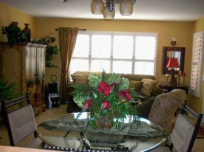 Now this is the restful and cheerful Arizona address you've been looking for! Set facing open green space with south exposure for peace and quiet time. Fully updated from floor to ceiling to accommodate your lifestyle; Gorgeous cabinets in the kitchen, to first class toilets in the bathroom. Desert tile flooring with soft yet vivacious paint to brighten your days. Split bedroom floor plan fully equipped with gorgeous plantation shutters, new plumbing fixtures, and did we mention FULLY FURNISHED?: Appliances, Furniture, Decorative items, Linens and even Dishware. Move in ready, all you need is your toothbrush!''