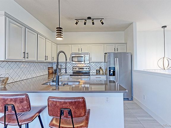 Welcome to Fair Winds located in the desirable Mckay Landing Neighborhood of Broomfield. This former model unit has been meticulously remodeled and is stunning throughout. This upstairs unit has a ground entrance for guests and direct access to the home from the attached garage. Up the grand staircase is the single level living complete with 2 bedrooms, 2 bathrooms and private utilities room. Beautiful wood floors cover the entire unit and create a modern sense of continuity between living areas. At the top of the stairs is an open floor plan complete with family room, dining area and kitchen all remodeled with designer touches throughout. Just off the family room is a private deck with views of the wonderful Mckay Lake and parks -Perfect for a stroll through nature. The primary suite is large and has a spa-like bathroom with attention to special details including custom shower, hardware, cabinetry and lighting. Equally as upgraded is the secondary bathroom which is ready for your guests to enjoy. In addition to the lake, the property is located near a large neighborhood park and the community offers a clubhouse and pool for your enjoyment. Don’t miss your opportunity to own this lovely unit.
