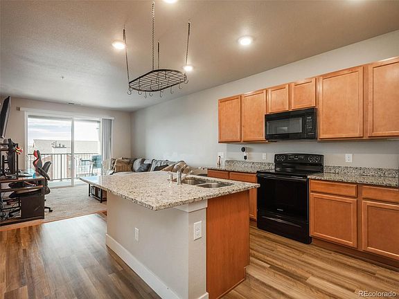 Fabulous, nearly new, open concept condo with 9’ ceilings. The large kitchen has a huge island with seating, granite countertops, all appliances, and loads of cabinets with a pull out spice rack that will inspire the cook in you. Enjoy the outdoors on your private covered balcony that faces west and fire up the grill for a BBQ. The bedroom is spacious and faces west. The large full bathroom opens to a large walk-in closet with built-ins. In-unit laundry with the included washer and dryer is a huge bonus. LIV at City Center is a well-maintained community with ample guest parking and secure entry. The prime central Aurora location is just blocks away from restaurants, shopping, Settler's Park, Aurora Center Light-rail Station & Gateway High School. With quick access to I-225 you can easily reach the Tech center, DIA and downtown Denver. Seller has a 3 year transferable warranty that will give you peace of mind. Don't miss this opportunity to live the carefree lifestyle in this fabulous condo that checks all the boxes. It absolutely will not last!