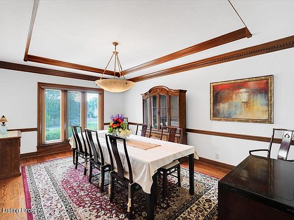 Situated on a charming cul-de-sac in one of Louisville's highly sought-after neighborhoods, this stunning former Homearama masterpiece was built by Amos Martin. This exceptional 4 bedroom, 3.5 bath home is conveniently located near interstates, schools, Valhalla, the Parklands, and some of the amenities of Lake Forest like tennis courts and pools. Attention to detail and care of design are evident with gorgeous hardwood flooring, intricate millwork, and impressive tray and vaulted ceilings. The home's design and flow allow for a quiet, relaxing sanctuary and yet can be ready at a moment's notice to provide a wonderful place for entertaining family and friends. The oversized dining room is freshly painted (Summer '24) and delightful setting for memorable gatherings. The formal living ...room is welcoming and allows for flexibility to be a reading room, home office, play space, or whatever you need. The living room boasts a fireplace, wet bar area, and bookshelves. The spacious and freshly painted (Summer '24) kitchen showcases tiled backsplashes, spectacular amounts of storage, Wolf double ovens, Wolf gas cook top, and an oversized island. Retreat to the primary suite, where vaulted ceilings and 2 walk-in closets - one featuring cedar lining - offer an oasis of tranquility. Enter a dream spa retreat in the large primary bathroom, brimming with potential. The basement has additional living spaces, laundry room with sink, full bath, and ample storage options. The fenced backyard has a patio, gas line hookup for your grill, beautiful landscaping, and a 7-zone irrigation system. Call for your showing today!