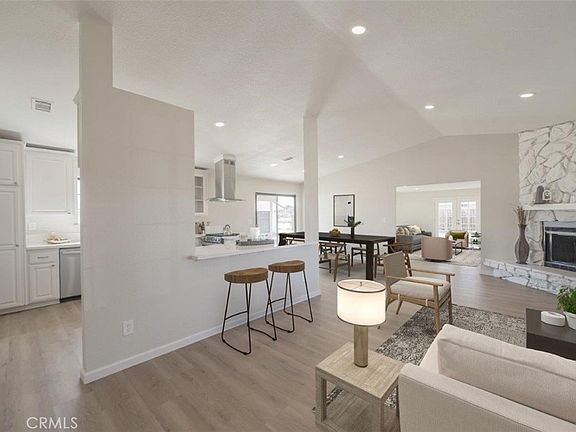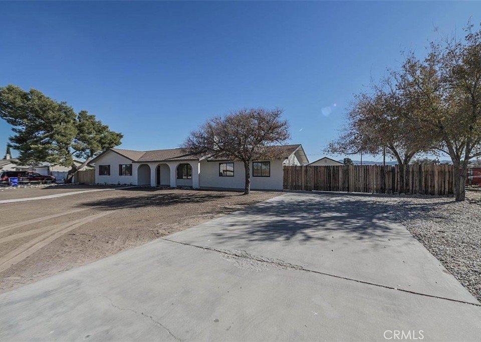 Searching for a freshly remodeled 3 bedroom 2 bath move in ready Apple Valley home with clean modern look where you can simply move in, unpack, and relax? This beauty is the one plus offers so much more. This residence has been modernly renovated throughout and bursting with character. Set in a tranquil neighborhood, this home offers the modern comforts and a life of leisure. Freshly painted exterior with a detached garage in the back and on over an acre lot! The lot is low maintenance, with shade trees and plenty of room on both sides for RV, boat or trailer. Inside, the open-concept interior is clad in neutral tones and offers so much to the new owners. Radiant sunlight spilling through large windows combines with recessed lighting to create a warm, welcoming ambiance complemented with newly installed wood laminate flooring. Try out new recipes in the reimagined kitchen equipped with a suite of brand-new stainless-steel appliances, including a stove, dishwasher, and stainless steel vent hood. Your new chic kitchen features modern quartz countertops, and plenty of gorgeous white cabinetry ready for you to entertain with this delightful culinary space. Kitchen opens up to the dining room and living room with cozy rock fireplace as well as the indoor laundry room on the other side. Retire to the comfortable proportions of your newly carpeted private retreats, all graced with ceiling fans and lots of natural light. Primary bedroom offers new carpet, paint, ceiling fan and private bathroom. Crafted for outdoor gatherings, the backyard is the perfect spot for your weekend BBQs. Secluded large garage in the back with plenty of room on both sides for an RV, boat or anything additional you would like to add, it truly is an inviting escape for all. Over an acre of space so you have so many options and privacy, think of the possibilities! Newly painted interior and exterior, new modern light fixtures, new ceiling fans, new carpet in bedrooms, large family room, living room and laundry room plus so much more. Experience all this fabulous home has to offer by coming for a tour before your opportunity is gone for good!