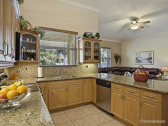 Beautiful move in ready single family home with vaulted ceilings in pristine condition. Featuring 4 bedrooms and 3 full bathrooms, formal living, dining and family room. Open concept updated kitchen with granite countertops and stainless steel appliances. Covered patio with a pet friendly yard & 2 car garage. Tile floors and crown moldings throughout the home. Lots of natural light. Spacious master bedroom and master bathroom with 2 walk-in closets. Home has hurricane shutters. No HOA fees.