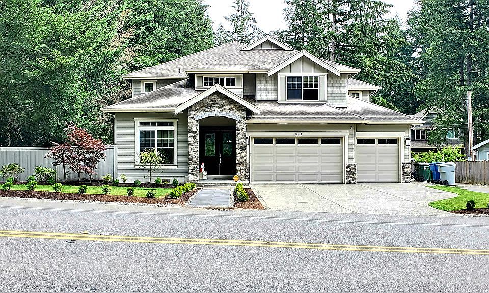 Fantastic opportunity to own this very nicely updated home in the Issaquah school district! Upgrades include: Laminate flooring in the living room+dining area and kitchen, new counters in kitchen and painted cabinets, fully remodeled bath with marble tile floor and new vanity, new carpet in both bedrooms, new forced-air zone heating with A/C and heat pump, French doors leading to huge deck, 2 ponds, 2 sheds, RV parking, gazebo, great landscaping! Wow!