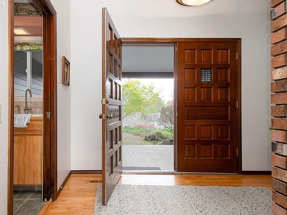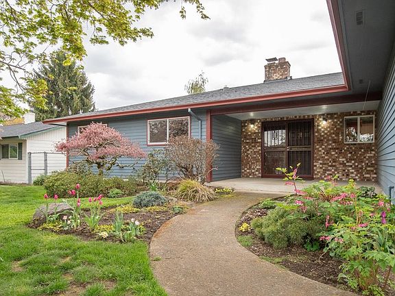 This elegant 1978 rambler-style home exudes a timeless charm, boasting distinctive vintage aesthetics highlighted by its classic covered front porch, extended eaves, and low pitch roof. Built on a large 7319 sq. ft lot in the desirable Argay Terrace neighborhood known for its breathtaking views of Mt. Hood and St. Helens Mountains. Minutes from Argay and Luuwit parks, Glendoveer Golf Course, Cascade Station, PDX Airport, Costco, restaurants, shopping, and easy access to freeways north and south. This single-story home features a welcoming foyer, vaulted ceiling, hardwood floors, pocket doors, solar tubes and a sunken living room with a wood-burning fireplace and mantel. Great family room extends seamlessly to the outdoors through a sliding door, leading to a deck that enhances the indoor-outdoor living experience. Updated kitchen with stainless steel appliances, includes a new dishwasher and a high-end built-in 4-burner gas range with a vent hood and built-in oven. Additional features include a pantry cabinet, laminate countertops, vinyl floors, and a cozy breakfast nook. The primary ensuite bedroom offers walk-in closet. Hallway solar tube and spacious laundry room includes the washer and dryer. Gas furnace, heat pump, new tear-off lifetime roof with transferable warranty, and efficient vinyl windows. Beautiful, landscaped yard with mature cherry tree, Sango, Japanese maple trees and sprinkler system. The backyard features a deck, paver walkway, shed, and abundant space for gardening and entertaining. Attached double car garage 546 sq. ft. with an automatic opener for added convenience. [Home Energy Score = 4. HES Report at https://rpt.greenbuildingregistry.com/hes/OR10226372]
