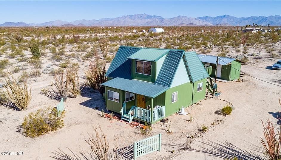 EXCITING NEW LISTING LOCATED IN DESERT SHADOW RANCHOS SUBDIVISION IN YUCCA ARIZONA! **ADORABLE HOME IN A VERY QUIET AREA** INCREDIBLE PANORAMIC MOUTAIN VIEWS** 2.35 ACRE PROPERTY**CABIN STYLE HOME WITH QUALITY CONSTRUCTION**ADDITIONAL 220 SQUARE FOOT +/- DETACHED STORAGE BUILDING WITH POWER & A COVERED PATIO**THE PROPERTY HAS MATURE TREES ( HYBISCUS & PINE)** FRONT COVERED PATIO WITH UPGRADED REAL WOOD DOORS(FRONT DOOR HAS STAINED SUNFLOWER GLASS) **UPSTAIRS DECK** THIS 2 BEDROOMS HOME HAS ONE LARGE BEDROOM AND A BATHROOM ON MAIN FLOOR** UPSTAIRS LOFT AREA INCLUDES A LARGE UNFINISHED BEDROOM WITH WALK IN CLOSET** INTERIOR FEATURES INCLUDE KNOTTY PINE WOOD FLOORING & TILE**DUAL PANE WINDOWS**FRENCH STYLE DOOR** REAL WOOD TRIM** SPACIOUS LIVING ROOM** DINING ROOM WITH LARGE VIEW WINDOWS*CUSTOM WOOD STAIRCASE* COUNTRY STYLE KITCHEN WITH NATURAL LIGHTING, TILED COUNTER TOPS AND FLOORS, COPPER SINK , REFRIGERATOR, STOVE & MICROWAVE**LARGE OWNERS SUITE** CUTE BATHROOM W/WALK IN SHOWER** ENCLOSED PATIO OF THE BACK OF THE HOME**SECOND UPSTAIRS BEDROOM IS NOT FINISHED . HAS A NICE DECK FOR PRIVACY** WASHER ADN DRYER ARE LOCATED IN THE EXTERIOR STORAGE BUILDING** WATER STORAGE TANK** CENTRAL