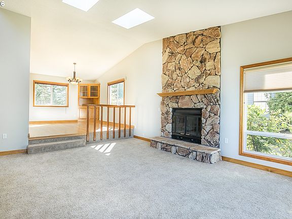Welcome home to this spacious 2 story contemporary w/ vaulted ceilings, 2 gas fireplaces, fresh paint & updated kitchen & baths! Master suite w/ private balcony/deck, walk in closet & vaulted! 2 huge additional bedrooms! Generous south facing yard, RV/Boat pad & ample parking, 2 composite decks from 2013, updated windows & siding 2005, A/C & Hunter Douglas Blinds! No expense spared in this home! Partial Mt Hood view and steps to Parks!