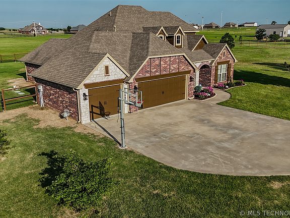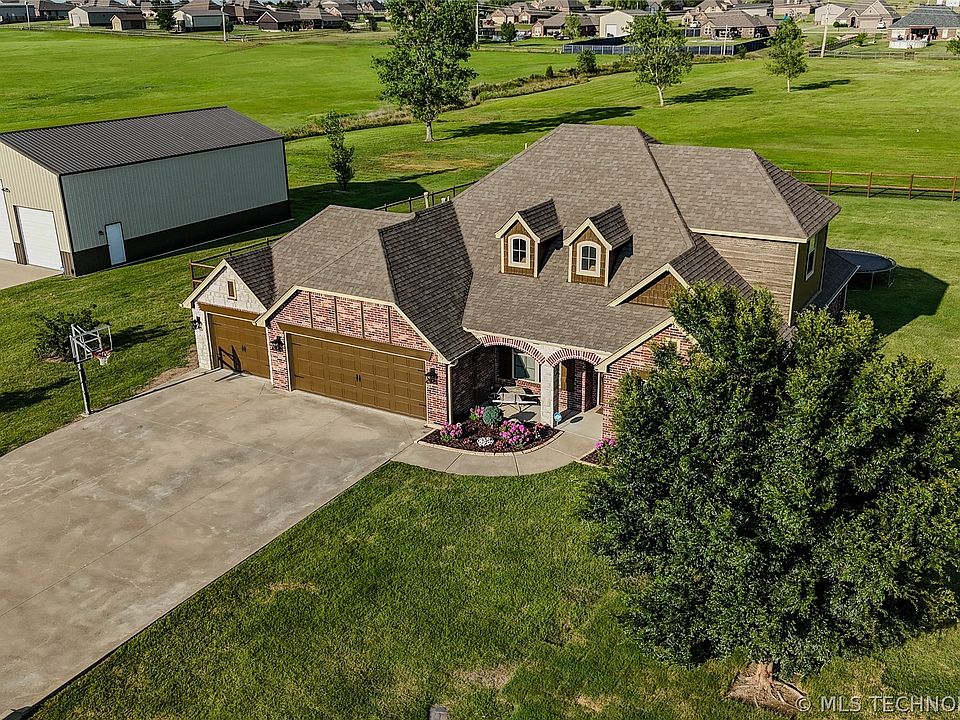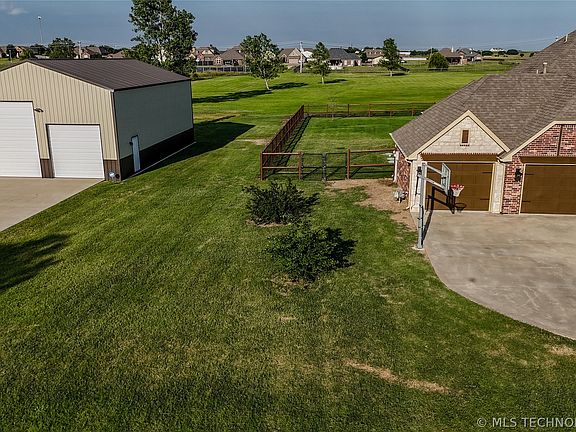 Move-in ready, everything's been taken care of for you. Split floor plan has 4 bedrooms plus hardwood floor office (could be 5th bedroom). Open concept kitchen. Granite throughout. Private upstairs living area with bedroom, living/bonus room, and full bathroom. Huge master closet. Vaulted living room with beautiful wood beams. Partially fenced 5 acres, level with grass. Above-ground 6' x 4' tornado shelter in the garage. 30'w x 50'd x 16'h shop built in 2014, equipped with 30 amp RV outlet, security system integrated with house's, and 2 new electric overhead door openers (10' and 12' tall doors). Collinsville school system, quick access to Hwy 75 to get to Tulsa, Owasso, or Bartlesville. 20 minutes from Skiatook Lake or Oologah Lake. Only 15 minutes to Downtown Tulsa. Enjoy beautiful sunrises and birds chirping from the covered patio with TV mount, ceiling fan, built-in speakers, and natural gas connection.